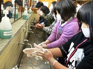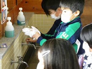 インフルエンザ等の防止のために、休み時間には手洗いや天井に貼ってあるイラストを見てのうがいに努めています。本日は全校の欠席児童は0(ゼロ)でした。