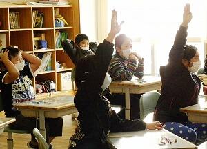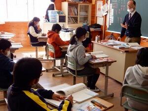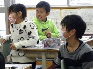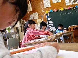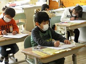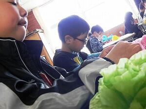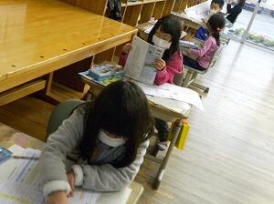 今日は暖かく、お昼には汗ばむほどでした。3年生は、卒業式に向けて装飾花を作成しています。5年生は、社会科の勉強を頑張っています。