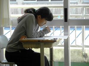 朝から強い雨が降り続いています。そんな中、1年生は、音楽科の「学年のまとめ」テストをがんばっています!