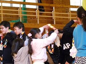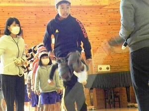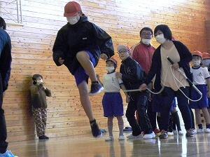 今日は長なわ大会でした。保体給食委員会の子どもたちが進行をします。準備体操後に、各班で練習、そして本番です。3分間で何回飛べるか。いち、にい、さん・・・と大きな声が体育館中に響きます。結果は、B・E班が182回で優勝でした。大会後には、各班とも長なわ大会の練習を振り返り、感想を述べ合っていました。