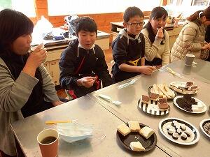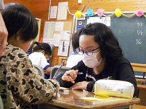 6年生の「総合的な学習の時間」では、大堂津の名物について調べています。今日は、日南市漁協女性部の方をお招きし、大堂津天をつくりました。