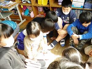 今日は、浜っ子班で「砂の造形」についての話合いがありました。3月4日の遠足(大堂津浜に行きます)のプログラムの中に、「砂の造形」があります。