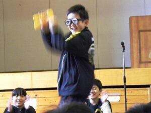 今日は、お別れ遠足。遠足に行く前に、6年生を送る会を行いました。お世話になった6年生に、在校生が、感謝を込めて歌やプレゼントを渡しました。最後に6年生が、様々なパフォーマンスで、みんなの心を温かくしてくれました!