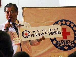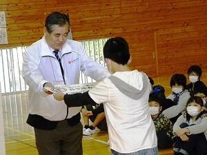 本校は、青少年赤十字加盟校です。本日は、日本赤十字社宮崎県支部から、加盟校の看板を贈呈していただきました。
