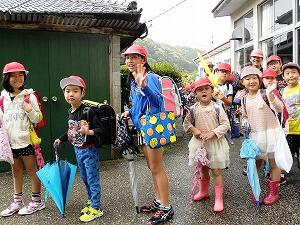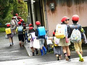 今日は家庭訪問最終日です。いつもより早い時刻に帰る子どもたち。地区ごとに集団下校をしています!