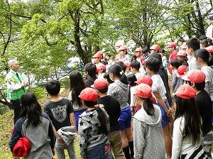 心地よい風を感じながら、5年生は「総合的な学習の時間」に、学校田で観察をしてきました。3月に植えたもち米の苗は、順調に成長しています。帰りに、シロツメクサを摘んで冠をつくりました。