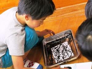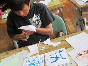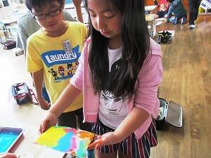 4年生の図画工作は、「絵の具でゆめもよう」という単元です。マーブリングやビー玉を転がすなどして、いろいろな模様を表現していました。