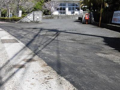 正門付近の道路に穴があき、でこぼこしていて、雨の日は水がたまる等、困っていましたが、本日補修工事が行われ、きれいになりました。