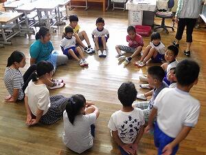 毎週月曜日の朝の時間は「えがおタイム」です。今日は「浜っ子班」で活動しました。「ハンカチ落とし」や「だるまさんがころんだ」、「ドッジビー」などなど、6年生が中心となり企画した遊びで、みんな笑顔になりました!