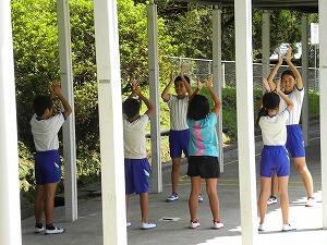 今日の昼休みには、赤団・白団ともに体育館に集合して、応援の練習をしていました。応援リーダーが、応援の振り付けや声の出し方の指導をしていました。