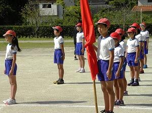 今日の全校朝会では、校長先生のお話の後、校歌の練習をしました。運動会当日の最後に歌います。運動場いっぱいに歌声を響かせてくれることでしょう。朝会後は、きちんと整列して教室に向かいました。