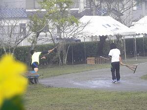 今日は運動会の総予行練習です。朝早くから、運動場の整備を先生方が行っています。