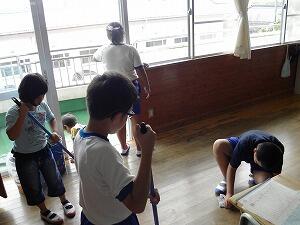 掃除の始まりになるチャイムで立ち止まって黙想をし、心構えをつくって、どの児童も無言で一生懸命に掃除をしています!!