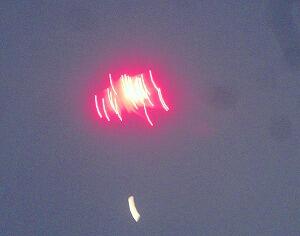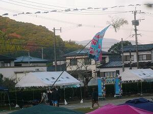 本日の運動会の実施を知らせる花火を打ち上げました!大漁旗の装飾を、PTAの方々が行っております。