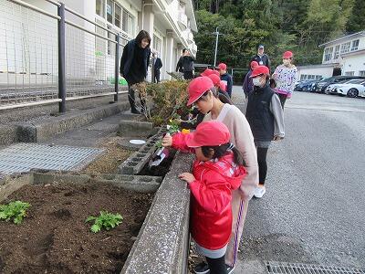 今週は、5年生の子ども達の提案で、朝の始業前の時間を中心に全校の子ども達がボランティアに取り組んでいます。10日と11日は花壇に花の苗を植えました。気温が低く、寒い中で、子ども達は、花の苗を植えてくれました。1年生から6年生までの全学年で取り組んでくれて、花壇の全てに花の苗を植えることができました。素晴らしい提案をしてくれた5年生とボランティアに参加してくれた全校の子ども達に感謝です。