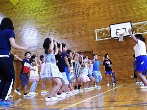 今日の昼休みには、赤団・白団ともに体育館に集合して、応援の練習をしていました。応援リーダーが、応援の振り付けや声の出し方の指導をしていました。
