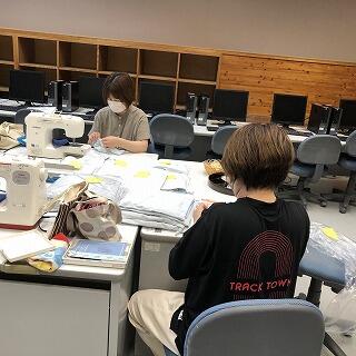 PTA地区事業部の皆様から、給食着の補修作業をしていただきました。