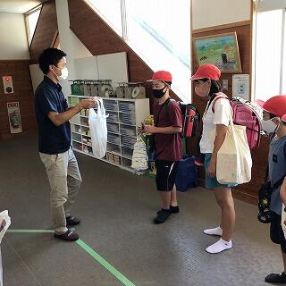 会長から、子どもたちへの温かいメッセージの校内放送があり、その後、花火セットとお菓子を一人一人にプレゼントされました。