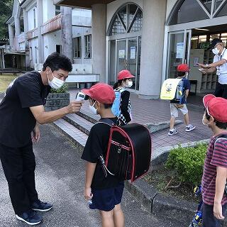 学校でも、県の緊急事態宣言期間中を目途に、職員が朝のあいさつを兼ねて検温を実施します。