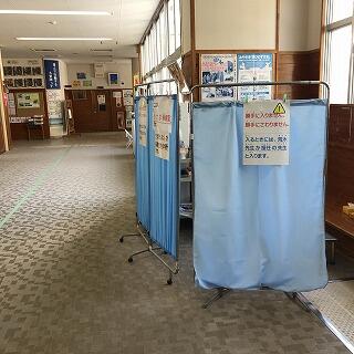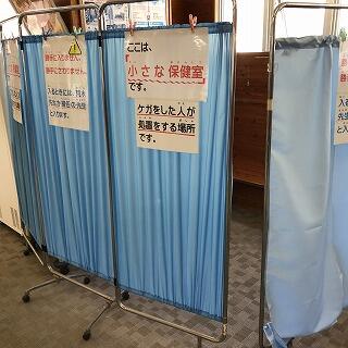 全国的な新型コロナウイルス感染症の急激な拡大に伴い、2学期から保健室の体調不良と外傷の手当のスペースを分けています。