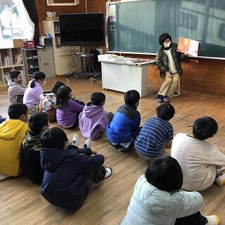 3学期初の読み聞かせ会を開催しました。目を輝かせて聴く児童の姿が印象的でした。