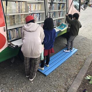 移動図書館たいよう号の来校日でした。楽しみに待っていた児童が多くいました。