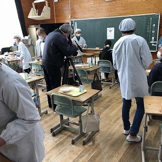 日南の郷土食の「魚うどん」が給食メニューに登場ということでメディアの取材がありました。