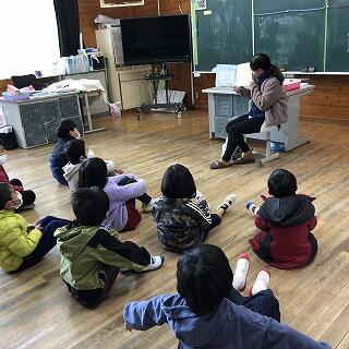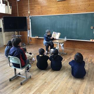 3学期初の読み聞かせ会を開催しました。目を輝かせて聴く児童の姿が印象的でした。