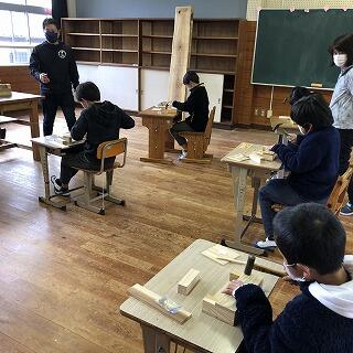 4年生が、市内の材木店の方を講師に招いて、木工教室を実施しました。
