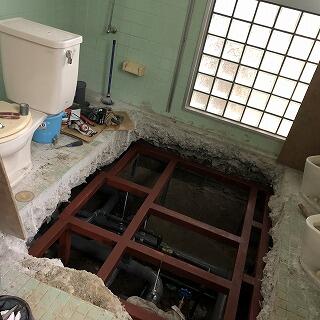 校舎1階トイレの排水管修理のための工事が行われており、修理後は便器も様式になり児童がより使いやすくなります。
