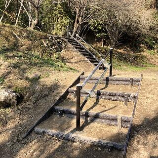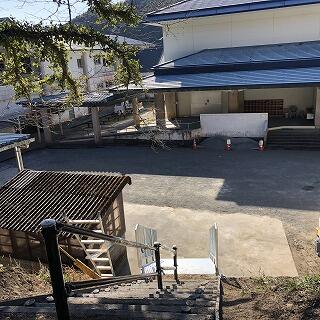 津波の一次避難場所への階段が完成しました。体育館裏から直接避難できるようになって時間短縮になります。