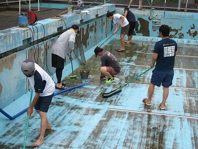 15日日曜日に番屋塾の保護者の方々を中心にプール清掃が行われました。