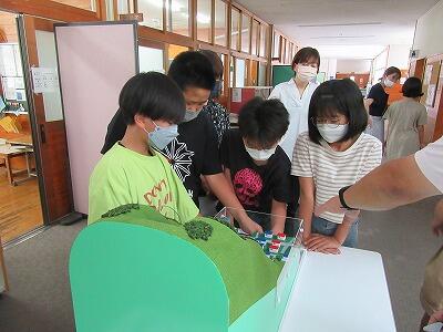 6月10日は、宮崎県土木事務所の方々による土砂災害防止教室を5・6年生で実施しました。土砂災害にはどのようなものがあるのか、避難場所の確認、防災マップの重要性、日頃から気を付けておくこと等について学習しました。映像を視聴したり,模型に触れたりしてとても具体的に土砂災害の危険について学ぶことができました。
