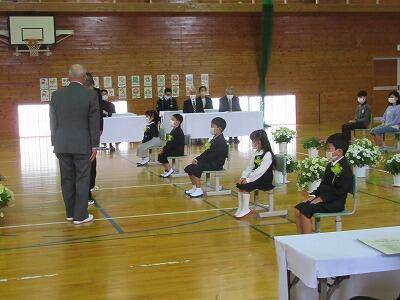 新入生氏名点呼では、一人一人がしっかりとした返事を行い、元気いっぱいの1年生でした。明日から、学習に運動に励んで大きく成長してほしいと願っています。優しい上級生と触れ合って、楽しい学校生活を送ってほしいです。