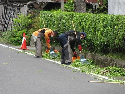 19日は、日南市の環境整備員の方々が校内の草刈りや樹木の剪定作業等を行ってくださいました。学校の職員や子どもではとても手の届かないところをきれいにしてくださいます。卒業式や入学式の花もいつも育てて管理してくださります。大堂津小学校がきれいな学校でいられるのは、環境整備員さん方のおかげです。心より感謝申し上げます。
