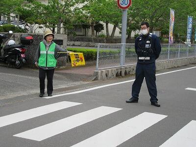 本年度も毎朝正門で見守りボランティアの竹井輝子さんと大堂津駐在所の廣島国智さんが交通指導と温かい声かけを行ってくださいます。二人とも優しい笑顔で迎えてくださるので子ども達も朝から元気がもらえているようです。お二人の優しい心遣いに心より感謝申し上げます。是非、健康等に留意されて過ごしていただきたいです。