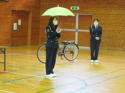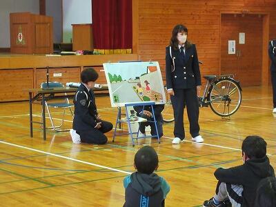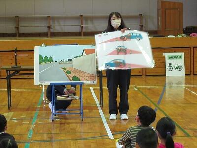 18日に交通教室を実施しました。日南市の交通協会の方々を講師に招いて、2校に1・2年生、3校時に3・4・5・6年生が実施しました。本日は、あいにくの雨でしたので、体育館で最初にDVDを鑑賞し、その後、交通指導員の方々の説明を聴きました。正しい歩行の仕方や自転車の乗り方等について、イラスト等を活用したとても分かりやすい説明でした。