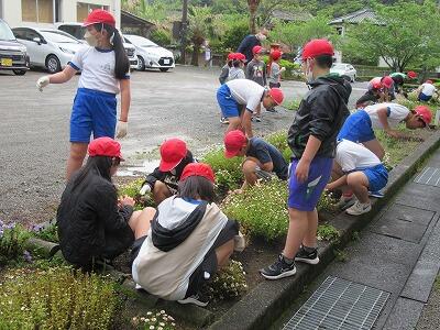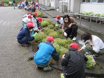 26日の朝の時間は、栽培活動で、全校児童と職員で花壇の整備を行いました。それぞれの学年で古くなった花の苗や雑草を抜きました。手や手袋を泥まみれにしながら、みんなで協力して行いました。次回は5月24日に花植えを行います。どんな花の苗が届くのかが楽しみです。