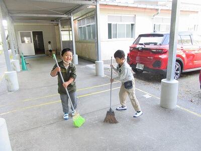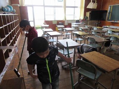 27日の朝の時間は、本年度最初の縦割り清掃を行いました。三つのグループに分かれて班長さんを中心に清掃場所の分担し、清掃を行いました。清掃用具の使い方等、清掃の仕方を上級生が下級生に優しく教えてあげていました。1年生も初めての体験でしたが、とても意欲的に清掃に励んでいました。