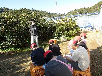 13日に3年生は、社会科の学習でキンカン農家を見学しました。この学習には、「自分たちの地域の人々の生産や販売の実際について、観察・調査したり、表現したりして、仕事に携わっている人々の努力や工夫を具体的に考え、日南市の自然環境を生かした産業であることを理解する」という目的があります。そこで今回は、大堂津地区でキンカンを栽培されている築地宏和さんにお世話になり、キンカンの栽培についての説明を聞いたり、実際にキンカンを収穫したりしました。お土産に収穫したキンカンをいただき、子ども達は大喜びでした。