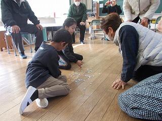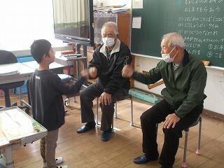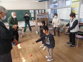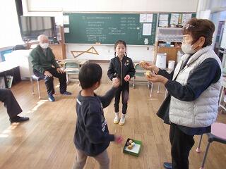 12月12日(金)、1年生が、地域の方をお招きし、昔の遊びで交流しました。