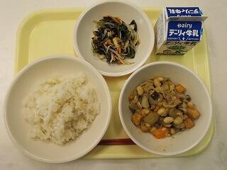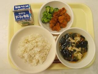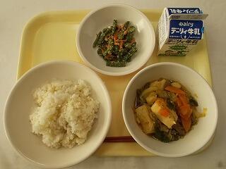チキンカレーは、子どもたちも大好きなメニューの一つです。まる麦ごはんと一緒にうれしそうに食べていました。