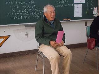 来てくださったのは、地域の高齢者の長尾一夫さん、地域学校協働活動推進員の野邊保美さんです。