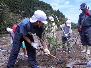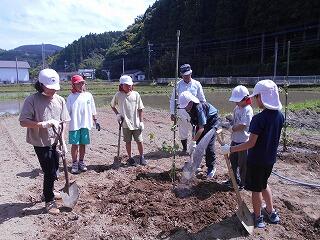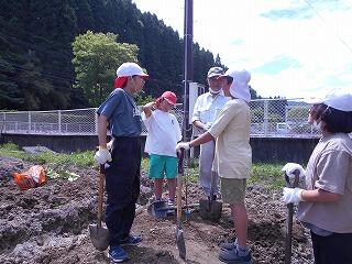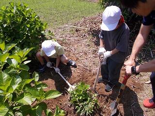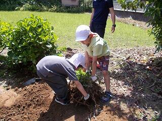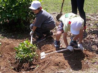 天気の都合で延期した作業でしたが、本日は好天に恵まれ、地域の皆さん、保護者の皆さんにおいでいただき、順調に作業を進めることができました。