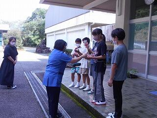 最後に、代表児童が、みんなで書いたお礼の手紙を差し上げました。