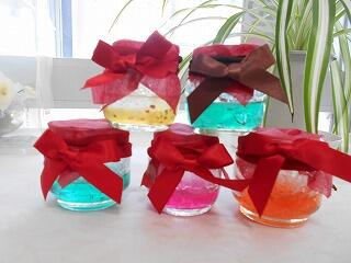 ジュースをただ冷やすだけでは固まりません。そこで、氷に塩をうんと加えて、その中にジップロックの中に入れたジュースを入れ、よくもむことで固まるようにするということでした。