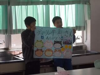 説明を聞いた後は、児童代表が感謝の言葉を述べ、みんなで書いたお便りをお渡ししました。