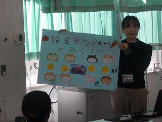 給食後は、その給食がどのようにして作られているのか、説明をしていただきました。