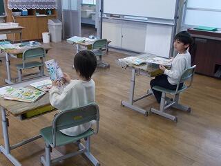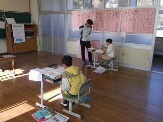 1・2年生は、国語で、音読の発表でした。みんな正しく、はっきりと読めていました。