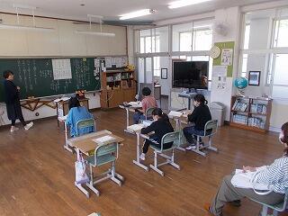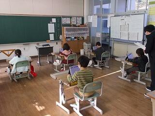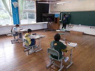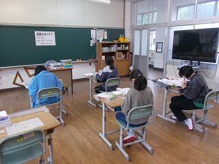 5年生は算数の「単位量あたり」の学習、6年生も算数で「比例・反比例」のまとめをしていました。